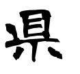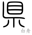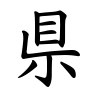 - #2旧字は縣に作り、𥄉(きよう)+系。𥄉は首を倒(さかさま)にして懸けた形。系はその紐。縣は懸首の意。〔説文〕九上に「繫(か)くるなり」とあり、すべて懸繫(けんけい)する意に用いる。金文の斉器〔叔夷鐘〕の銘に「其の縣三百」とあるのは、〔𦅫鎛(そはく)〕に「侯氏之れに邑二百又九十又九邑~を易(賜)(たま)ふ」とあるものと、ほぼ匹敵するものと考えられ、古く県は邑を単位とするものであったかと思われる。郡県の郡は、古く氏族国家の首長であった里君の所領地であり、また県は国の直接の支配地であった。ゆえに県・邑は賜与の対象とされた。(字通)