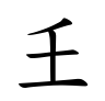 ものを高く捧げて立つ人の形。神意を知るために、人の挺立(ていりつ)する象とみるべきである。壬(じん)