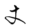 杖の形+又。又は手。手に杖をもつ形で、杖の初文。(字通)
