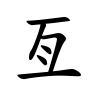 上下の二線の間に月または舟をはさんだ形。月の上端から下端まで、またはこちらから向こう岸までわたることを示す。(漢字源)