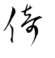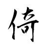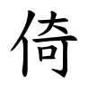 - #4人+音符奇不安定に立つこと。直立せず何かにもたれて立つこと。(漢字源)