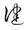 - #3声符は建。強健の意に用いる。〔易、乾、象伝〕「天行は健なり。君子以て自彊して息(や)まず」とは、君子の徳のありかたをいう。(字通)