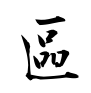 (さい))を列する形。ここでひそかに祝禱や呪詛を行うので、嘔・歐(欧)・毆(殴)など、その呪儀に関する字は區に従う。小さな区域をかこって行うので、区域・区分・区別、また区々の意となる。(字通)