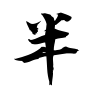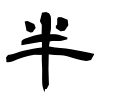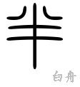#3物、中分するなり、に従ひ、に従ふ、牛の物為(た)るや大なり、以て分つ可きなり、凡そ半の屬は皆な半に従ふ。(説文解字)