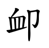 は盟誓のときに用いるもの。その前に人が坐する形。盟誓にのぞんで、つつしむ意を示す。敬卹が字の本義。それより憂卹の意となる。(字通)