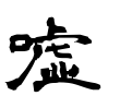 声符は虚(きょ)。虚は実態を失ったもの。ことばにもならぬ気息だけのものを嘘という。(字通)