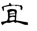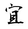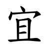 (多肉)をおく形で象形。のち廟屋の形である宀に従う。その形は会意。俎肉を供え、その供薦が神意に適うことから、適宜の意がある。神意の「よろし」とするところは、また「ただし」とされるところである。(字通)