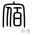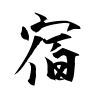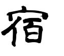 。人が廟中など神聖な建物に宿直することを示す字。(字通)