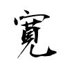 萈の廟中にある姿を寬(寛)という。しどけなき姿をしていたのであろう。#4 寬は廟中にその巫女のある意で、身をはだけて祈る形であろう。これによって神意を和らげ、寛うすることができると考えられた。#5
