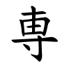 叀は底のある袋の形、それに手を加えて固く締めるのが專(専)、その丸くうち固めたのが團(団)、袋に入れて懸けるのが繫。