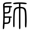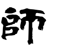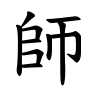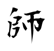 - #2𠂤(し)+帀(し)。𠂤は軍が出行するとき、軍社に祀った脤肉(しんにく)の象形。将軍はこの祭肉を携えて出行する。帀は帀(そう)めぐるとは別の字で、把手のある曲刀の刃部に、血止めの叉枝を加えている形で、肉切りの庖丁の類。脤肉(しんにく)をこれで切りとって携行する意で、師旅の意となる。師長が軍職を退いたのち、氏族子弟の教育にあたり、教学や軍楽のことを教えたので、教学・音楽は師氏の職掌とされた。(字通)