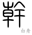 左側は日がのぼるような強い力を示し、乾の原字。幹は、それに音符干