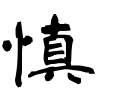 (=真)は、欠けめなく充実したこと。愼は「心+音符眞」で、心が欠けめなくすみずみまでゆきとどくこと。(漢字源)