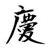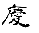 は神判のときに用いる神羊。その神判に勝訴をえた神羊の胸に、心字形の文飾を施し、吉慶のしるしとする。字は廌の側身形に従う。慶は神判による勝訴、ゆえに吉慶の意となり、神の恩寵・恵福を意味する。(字通)