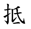 #1抵(あた)る。相当する。抵当(ていとう)は担保のことで、その価値とするに足るものを以ていう。