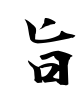 - #3氏+曰(えつ)。曰は器中にものを収めた形で、氏は把手(とって)のある小刀の形。器中のものを、小刀で切って食することをいい、美旨の意となる。旨はもと神に供するものなどに用いる語。甘は拑入(かんにゅう)する象で旨とは関係がない。(字通)