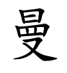 *1冃は頭巾の類、それを目の上まで深くかぶる面衣が冒、その面衣を引いて眉目をあらわすのが曼。