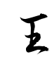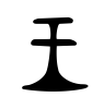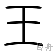 - #3鉞(まさかり)の刃部を下にしておく形。王位を象徴する儀器。神聖な儀器としての鉞頭の形。卜文・金文の下画は強く彎曲して、鉞刃の形をなしている。(字通)