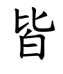 )と曰とに従う。比・从はともに人の連なり並ぶ形。曰は祝祷・盟誓を収める器。多数の霊が降下することを皆という。神霊に祈ってその意がかない、そろって霊が降下する意。(字通)