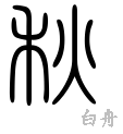 +火。卜文に、秋に虫害をなすものを焚く形の字がある。書、盤庚上に秋を稔りの意に用いる。(字通)
