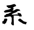 - #1繋(か)くるなり、糸に従ひ、丿を聲とす、凡そ系の屬は皆な系に従ふ。(説文解字)
