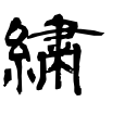 粛は文様を描くこと、これを織物に施すことを繍といい、刺繍によって伸縮の生じることを縮という。