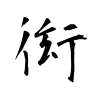 行は道路、その路上で呪儀するに、術は祟りをなす獣(朮)を用い、御は杵形の呪器(午)を用い、衒(𧗳)は祝詞や呪飾り(玄・言)を用いる。呪力は道路で行うことによって、他の地に機能すると考えられた。