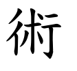 - #3行+朮(じゅつ)。朮は呪霊をもつ獣の形。この獣を用いて、道路で呪儀を行い、軍の進退などを決した。(字通)