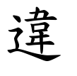 囗は城郭、韋は囗の上下に足の形を加えて城郭をめぐる形、さらに囗で囲んで囲(圍)、行を加えたのが衛で囗の周囲を巡回して衛(まも)ること、辵(ちゃく)を加えたのが違でめぐる行為をいい、上下異なる方向にめぐることから違(たが)う意、糸を加えたのが緯で上下めぐるように横糸をめぐらす意。
