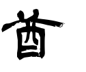に従ふ、水、上に半ば見ゆるなり、禮に大酋有り、酒を掌る官なり、凡そ酋の屬は皆な酋に従ふ。(説文解字)