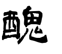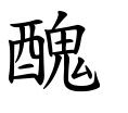 。金文の図象にある「亞醜形」では亞の字形に醜の字形を加える。鬼の部分は鬼の形ではなく礼冠を著けた人の形、酉に従うのは礼酒を酌む意で、呪詛に関する意をもつ字。(字通)
