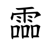 (さい)、祝詞を収める器の形。多くの祝詞を列して、雨を乞う請雨儀礼を示す。説文に三口を雨滴の象とするが、雨滴の象はすでに雨の字形中にある。(字通)