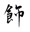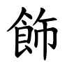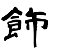 +巾。食事の際に巾(きん)を帯びる形。拭い清めることが原義。のち容飾・修飾の意となり、飾詐(しょくさ)のように用いる。(字通)